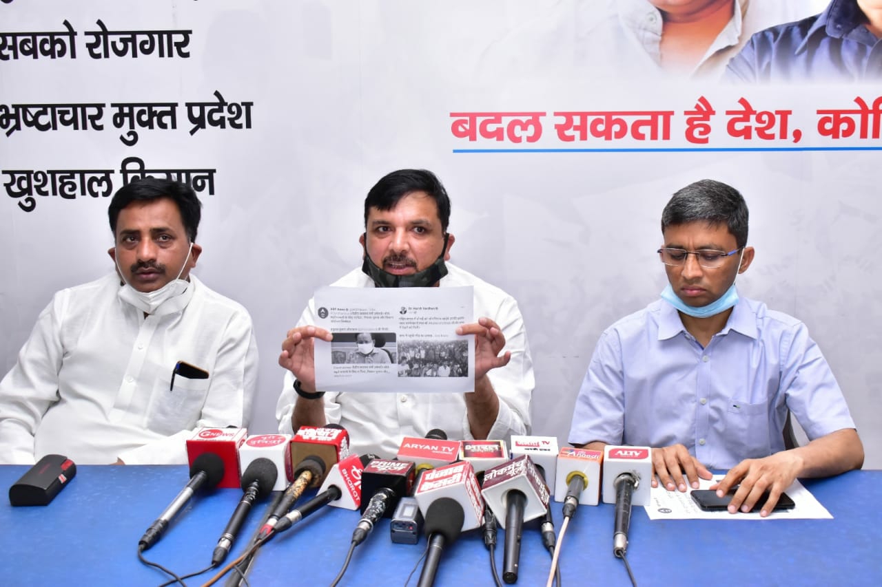 संजय सिंह ने कहा कि सतीश द्विवेदी खुद को गरीब बताते हैं। वह कितने गरीब हैं इसका प्रमाण मेरे पास है। 2017 में मंत्री बनने के बाद तमाम अनाप-शनाप जमीन खरीद के अकूत संपत्ति बनाई। मैं पूछना चाहता हूं योगी आदित्यनाथ से भ्रष्टाचार के आकंठ में डूबे ऐसे मंत्री को कैसे आपने अपनी सरकार में रखा हुआ है। मुख्यमंत्री जी आप कहते हैं ईमानदारी से सरकार चला रहे हैं तो क्या यह आपकी ईमानदार सरकार है। बीटीसी के अभ्यर्थी नौकरी मांगने आएं तो उन्हें लाठियों से पीटा जाएगा। शिक्षामित्रों ने नौकरी मांगी तो उन्हें लाठियों से पीटा गया, ग्राम विकास अधिकारी की नौकरी के लिए आए नौजवानों के साथ भी ऐसा ही हुआ। पुलिस भर्ती के नौजवान है तो उन्हें भी खूब पीट-पीटकर लहूलुहान किया गया और मंत्री के भाई को फर्जी ईडब्ल्यूएस सर्टिफिकेट पर नौकरी दे दी जा रही है। योगी आदित्यनाथ जी यह हो रहा है आपकी ईमानदारी की सरकार में।
